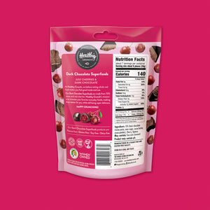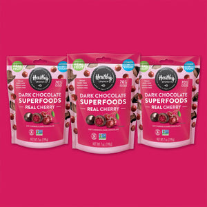 Just dark chocolate and cherries! Our Dark Chocolate Superfoods are made with real, whole fruits and then wrapped in 70% dark vegan chocolate.