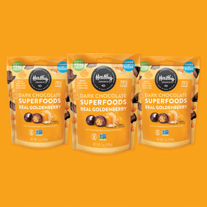 Just dark chocolate and goldenberries! Our Dark Chocolate Superfoods are made with real, whole fruits and then wrapped in 70% dark vegan chocolate.
