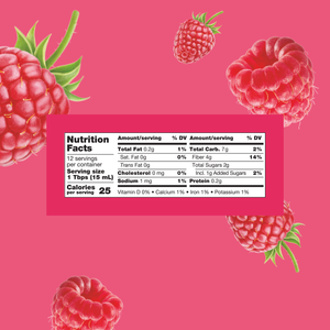 Raspberries, Tapioca Fibre, Pear Juice Concentrate, Glycerine, Chia Seeds, Lime Juice Concentrate, Lemon Zest.