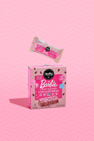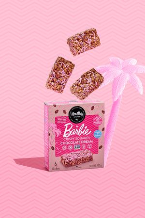 Our Barbie Chocolate Dream Crispy Squares have a base of chocolate crispy square that'smade with brown rice and topped with pink sprinkles for a better-for-you treat that's lower in sugar and super delicious.