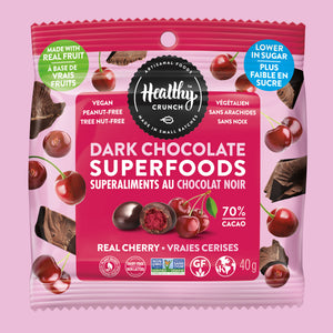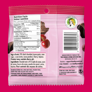 Just dark chocolate and cherries! Our Dark Chocolate Superfoods are made with real, whole fruits and then wrapped in 70% dark vegan chocolate.